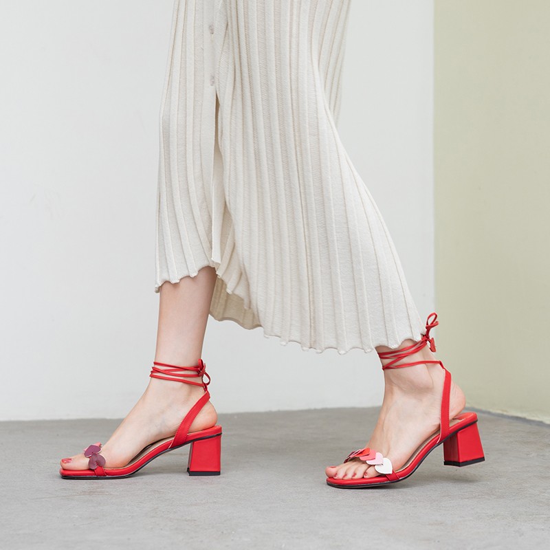 2019新款凉鞋女夏粗跟高跟鞋网红仙女风超火爱心少女一字绑带鞋子